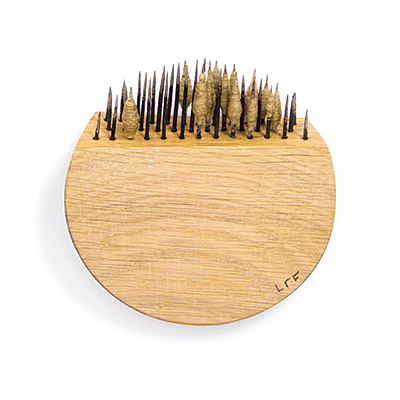 Hopelessly Hempless I, 2025, wood, iron, hemp, mixed technique, 146 mm, h: 45mm