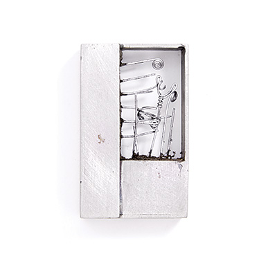 75. Egy csöpp csönd – Zsebkertjeim III., 2019, vas, föld, vegyes technika, 90x50x22 mm