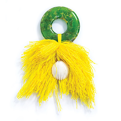 104. Kultikus üvegpénz, 2023, üveg, kagyló, textil, vegyes technika, 150x140 mmCultic Glass Money, 2023, glass, shell, textile, mixed technique, 150x140 mm